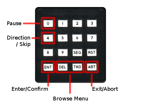 Here, TmA is the name of the timer, followed by the current time. The second row shows the same time in Julian format (useful for astronomy and other things). The keyboard looks like this:![]() Not the best layout, but this is what I had on hand when I was making the clock. If you decide to build this project and have a keyboard with different layout, check Using Different Keyboard in the Code section. The user interface of the clock is organized in menus. Pressing the and buttons will let you browse through the entries of a menu. Pressing the will select an entry (and perform the associated action with this entry - open another menu, set a value, etc). Going out of a menu is done by pressing the button. This will bring the previous menu up. Here is a diagram of the clock menus, followed by detailed description of each menu:![]() Main Menu - Timer Selection When the clock is just powered up, you are in the "Timer Selection" menu (the screenshot above). In this mode, you can browse through the 16 timers - TmA through TmP (as with any menu, use the and buttons to select timers).