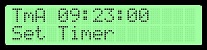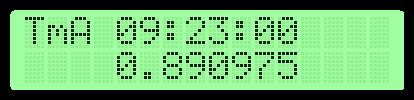 The clock display is a 2x16 LCD module. The first row always shows the currently selected timer. The second row is used to show either the Julian time, or the current menu selection: ![]() The sixteen timers are named TmA, TmB and so on, through TmP.