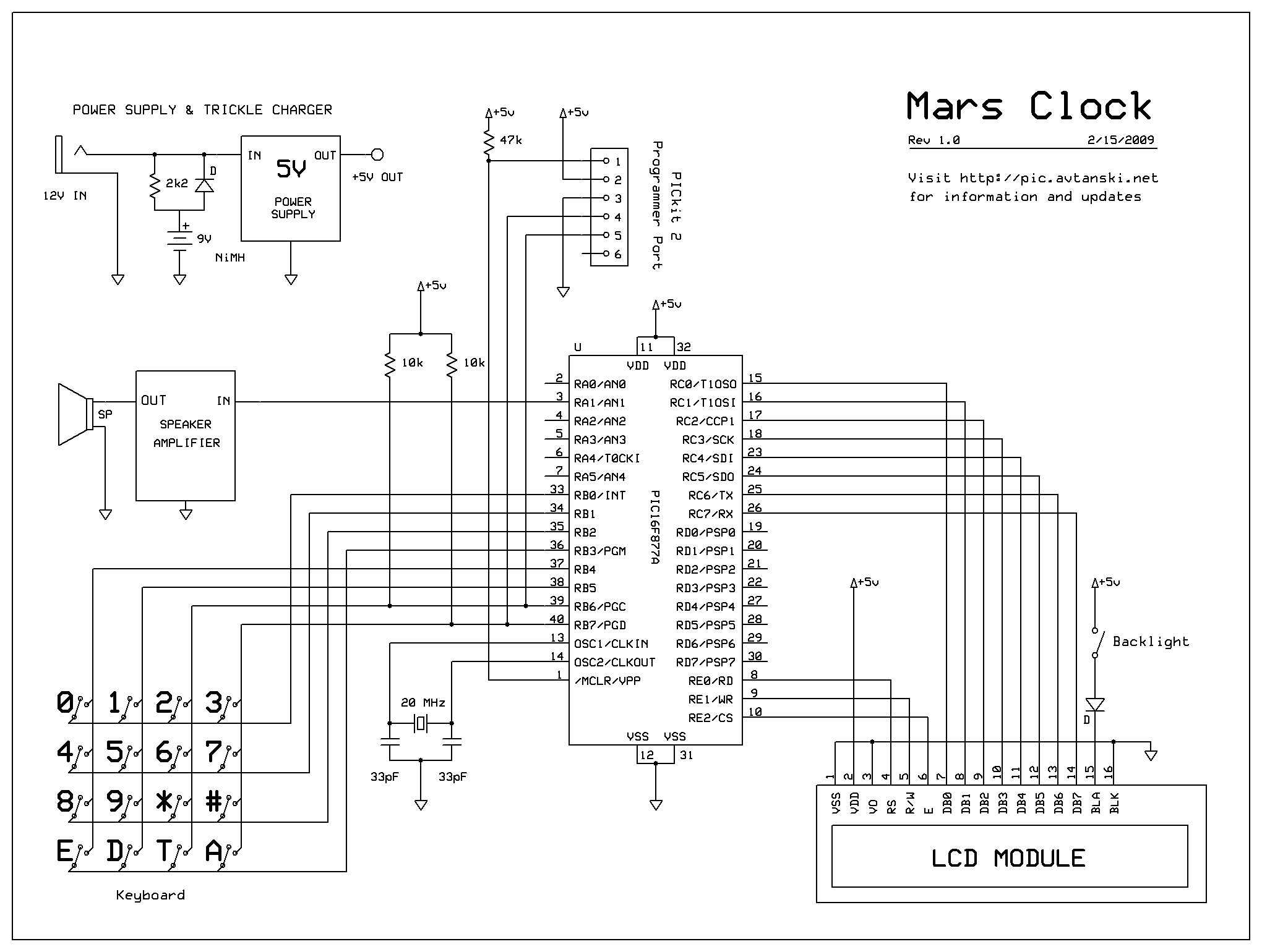 - The PICkit 2 Programmer port is intended for reprogramming the microcontroller without disassembling the clock. The DB25 to 6-pin adapter (see the picture) is not shown.