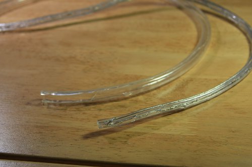 BTW, if you know where to cut, you can leave the rest of the rope still functioning. The tube contains two thick 110V wires between which the LEDs are connected in segments, each consisting of 30 LEDs in series. If you cut between exactly between two of those segments, the remainder of the rope will still be usable. Just make sure to insulate the cut end and read the disclaimer on the first page once again.