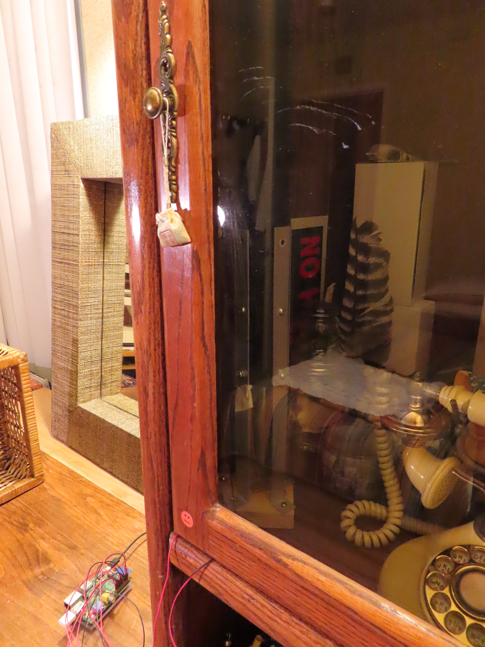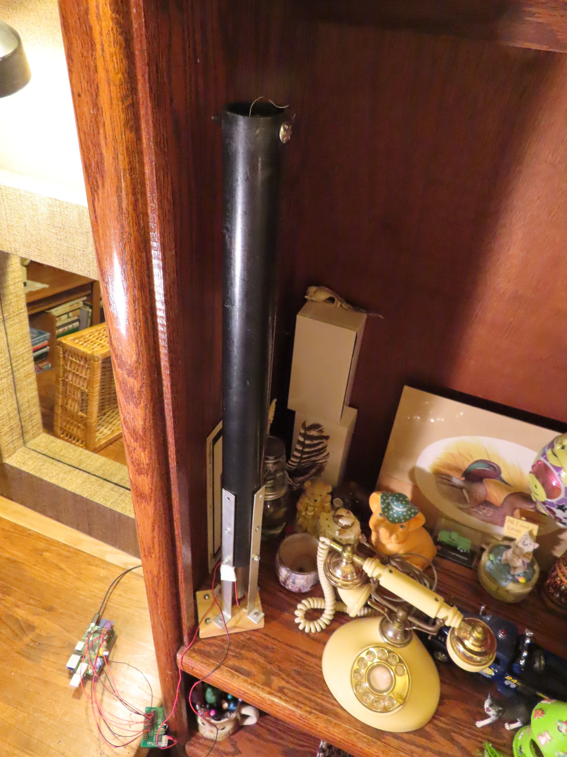 Here are some pictures of the actual device. It sits in the cabinet in the corner of the room, behind glass where the air currents do not affect it.